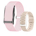 The bracelet is powered by a rechargeable battery and uses magnetic charging for convenience. It is designed with a lightweight body and a comfortable silicone or nylon strap for everyday wear.